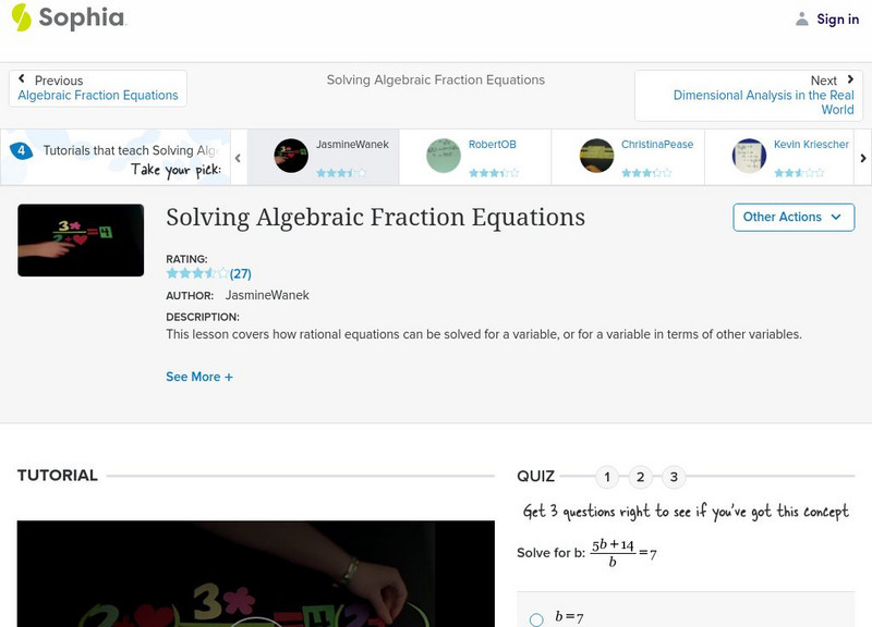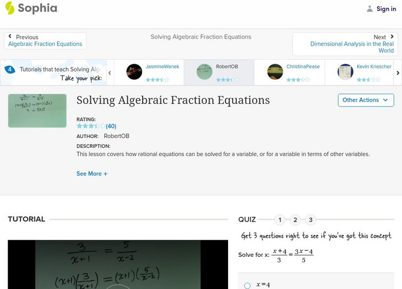 Sophia: Solving Algebraic Fraction Equations: Lesson 3