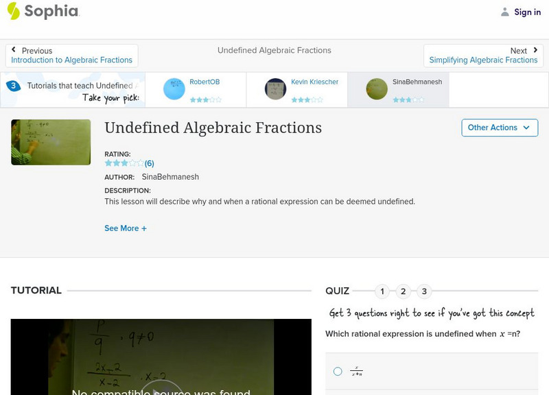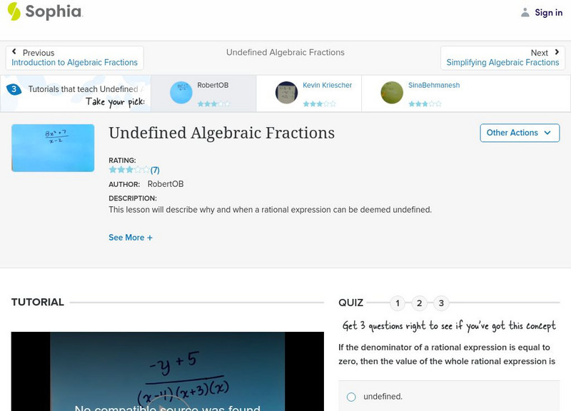 Sophia: Undefined Algebraic Fractions: Lesson 3