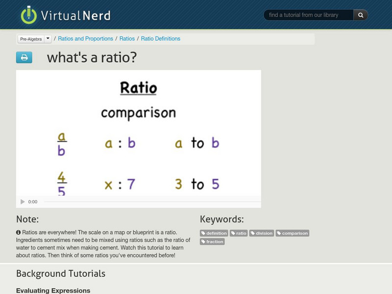 The algebra resource demonstrates how to solve ratio problems. Students learn about the concept through a video tutorial. [5:12]