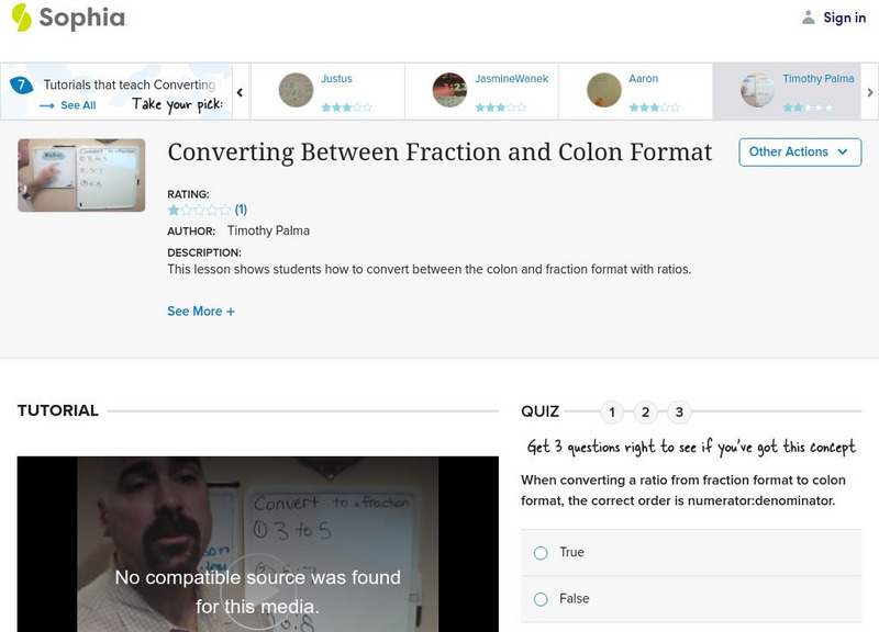 Sophia: Converting Between Fraction and Colon Format: Lesson 3
