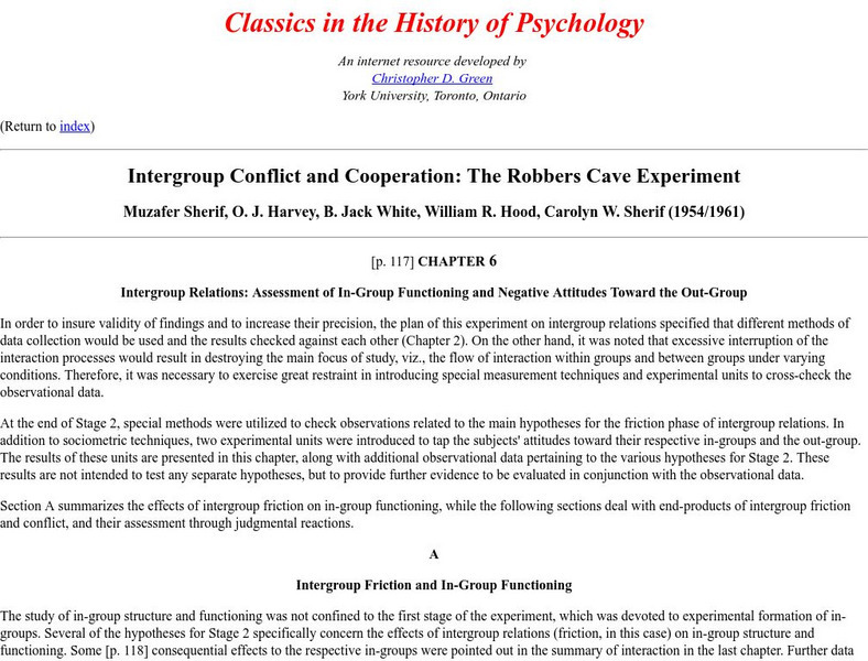 Classics in the History of Psychology: Intergroup Conflict and Cooperation
