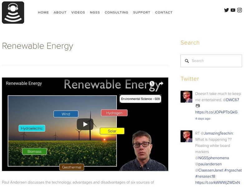 Paul Andersen discusses the technology, advantages and disadvantages of six sources of renewable energy; biomass, hydroelectric, solar, geothermal wind, and hydrogen. He also explains how changes in the storage and flow of energy in our...