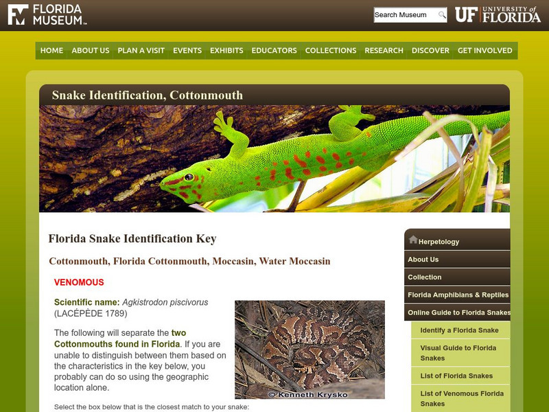 An identification key for the Florida and eastern cottonmouth water moccasins.