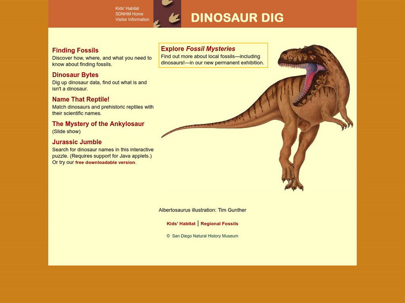 The San Diego Natural History Museum provides dinosaur lovers with plenty of information and fun facts with links to Finding Fossils and Dinosaur Bytes.