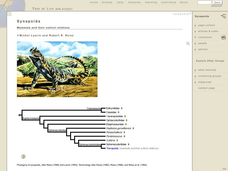 This site contains general information about the extinct link between reptiles and mammals. The Synapsida organisms are the link.