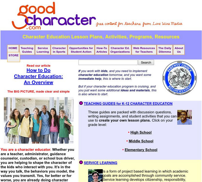 This site is loaded with resources for developing and maintaining a character education program in your school, class or team. It includes information on service learning, ethics in the workplace and leading class discussions as well as...