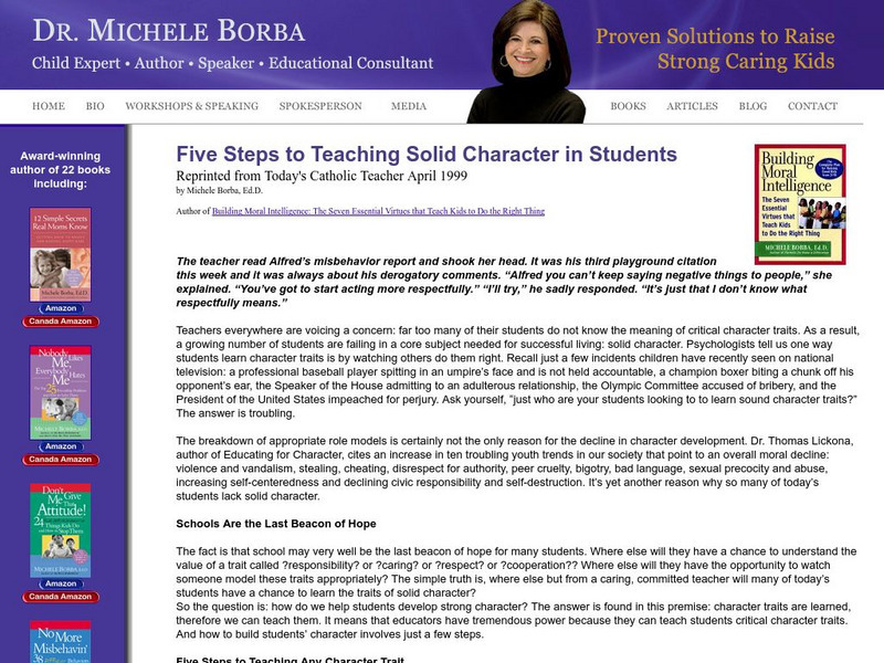The author of this article argues that character development must be taught in schools and that teachers must take steps to make sure students understand what perseverance, determination, empathy, responsibility, respect, and caring are....