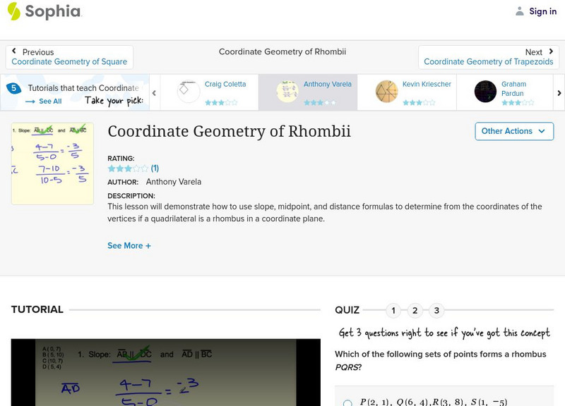 Sophia: Coordinate Geometry of Rhombii: Lesson 3