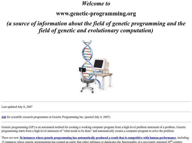 A very comprehensive site from genetic-programming.org that has theses, essays, articles, and links all relating to genetic programming.