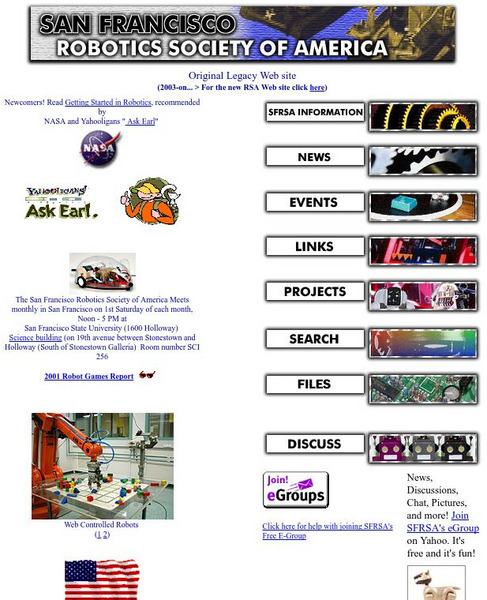 Linked to this site are several sites dealing with robots, their history, designing, and kinds of robots.
