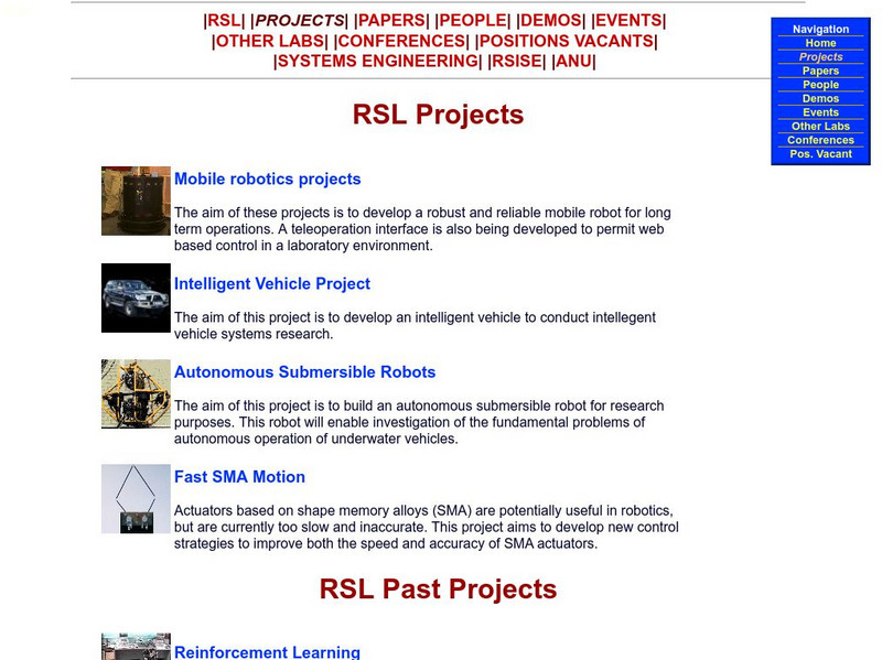This site from the Australian National University provides good descriptions and photos of robots involved in research in Australia.