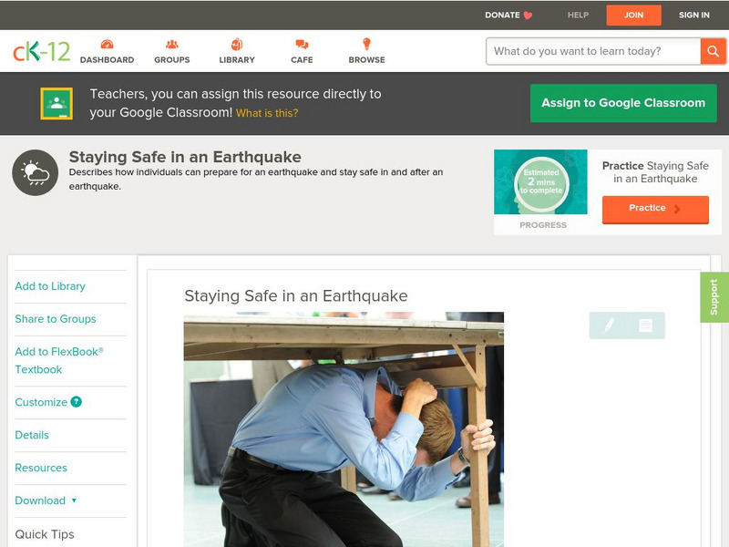 Ck 12: Earth Science: Staying Safe in an Earthquake
