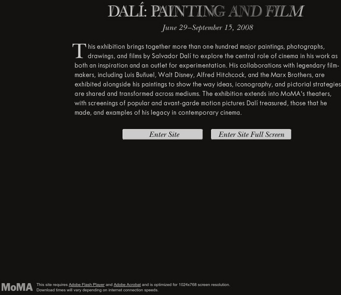 This exhibition at the Museum of Modern Art explores the relationship between Salvador Dali's art and the role cinema played in his works. Click on "navigate" in the right upper corner to work your way through.