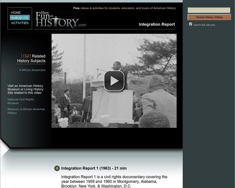 Integration Report 1 is a civil rights documentary covering the year between 1959 and 1960 in Montgomery, Alabama, in Brooklyn, New York, and in Washington, D.C..