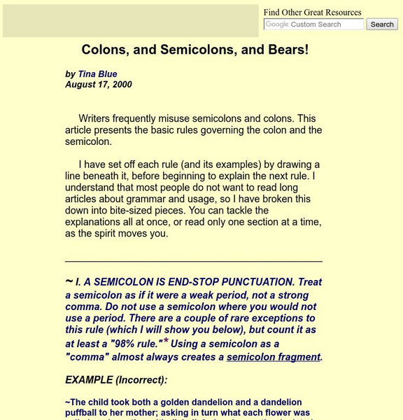 This writing lab site shows students how to correctly use semicolons and colons in punctuation.