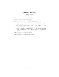 In this function worksheet, high schoolers describe functions in a given set. They determine the number of functions that correspond to a set. This one-page worksheet contains three problems.