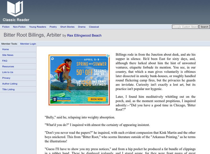Classic Reader: "Bitterroot Billings, Arbiter" by Rex Ellingwood Beach