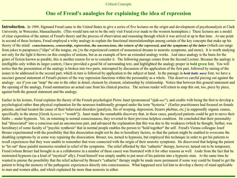 This site is an excerpt from a textbook. It explains Sigmund Freud's views on repression.