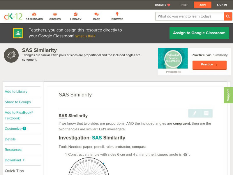 Ck 12: Geometry: Sas Similarity