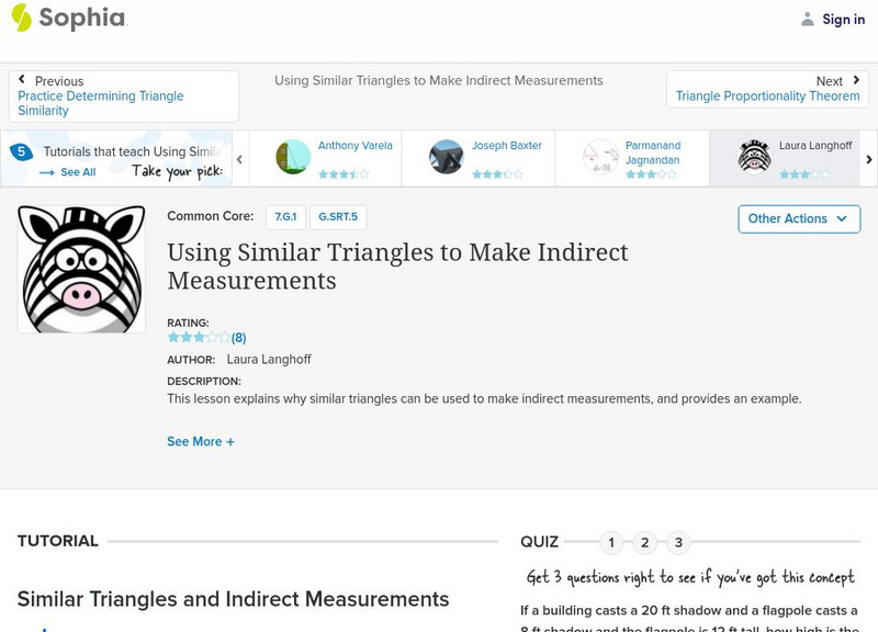 Sophia: Using Similar Triangles to Make Indirect Measurements: Lesson 5