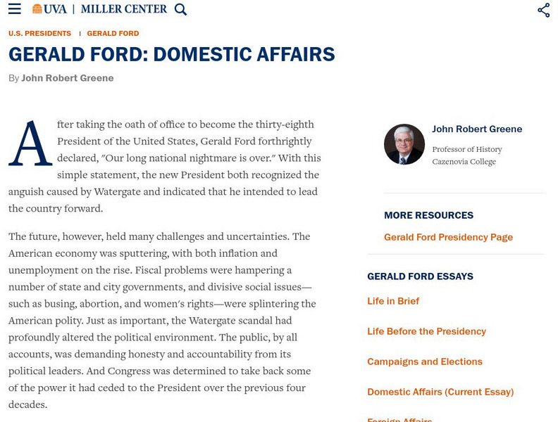 Miller Center at Uva: u.s. Presidents: Gerald Ford: Domestic Affairs