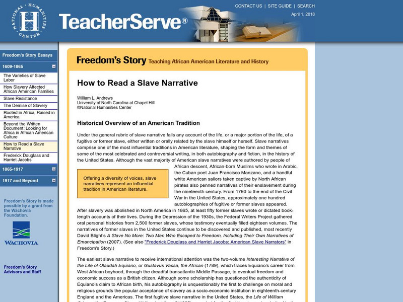 National Humanities Center: Teacher Serve: How to Read a Slave Narrative