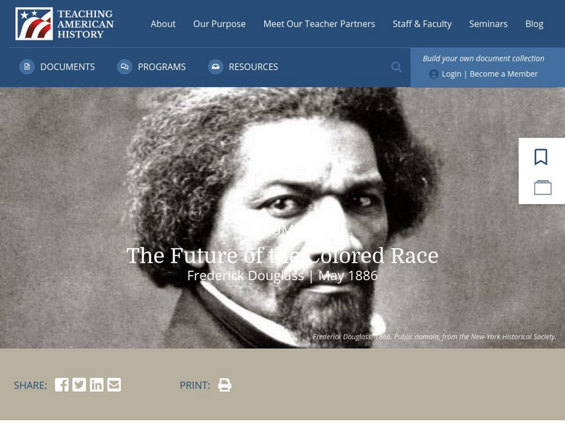 Full text to Frederick Douglass's essay "The Future of the Colored Race."