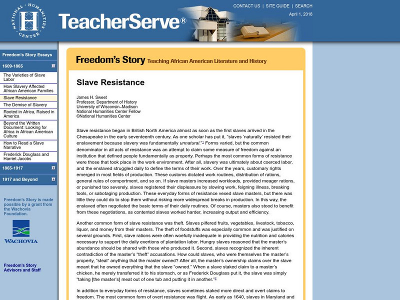 Essay explores the beginnings of slave resistance and its various forms. Includes ideas for guiding a student discussion.