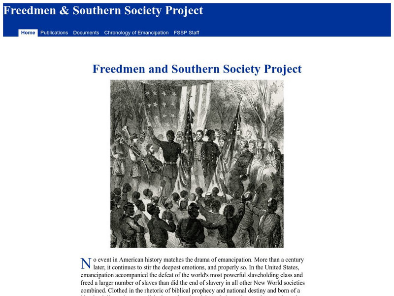 A website that "captures the essence" of the drama of the emancipation by using the experiences of the liberated slaves, defeated slaveholders, soldiers, civilians, Northerners, and Southerners.