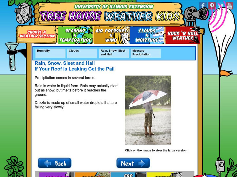 University of Illinois Extension: Tree House Weather Kids: Clouds and Moisture: Rain, Snow, Sleet, and Hail