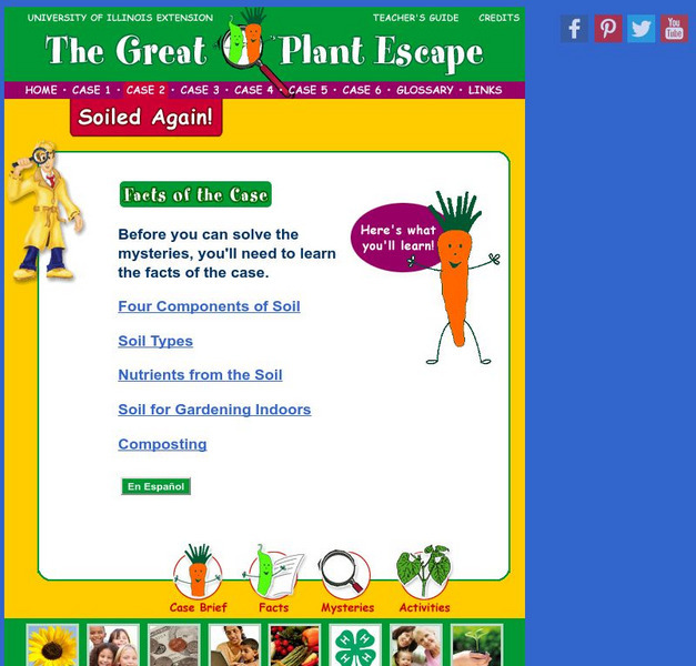 Become a detective and solve the soil mystery! To solve the case you must discover what soil is, why it's important, and in what kind of soil do plants grow. You will find out the four components of soil along with the different soil...