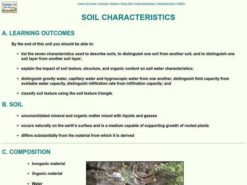 By the end of this unit you should be able to: list the seven characteristics used to describe soils, to distinguish one soil from another soil, and to distinguish one soil layer from another soil layer; explain the impact of soil...