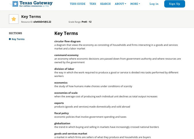 Texas Gateway: Chapter I: Welcome to Economics!: Key Terms