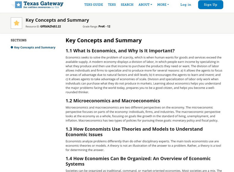 Texas Gateway: Chapter I: Welcome Economics!: Key Concepts and Summary