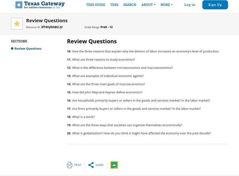 Texas Gateway: Ap Macroeconomics: Introduction