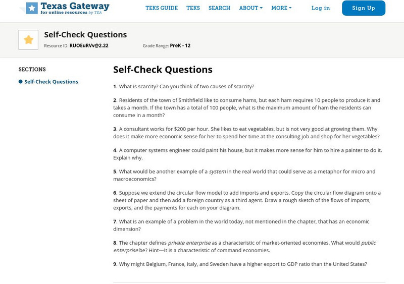 Texas Gateway: Chapter I: Welcome to Economics: Self Check Questions