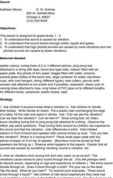 [Free Registration/Login Required] This lesson introduces fifth graders to the science of sound. Key concepts include sound waves, wavelength, amplitude, frequency, pitch, and intensity. There are many opportunities for student...