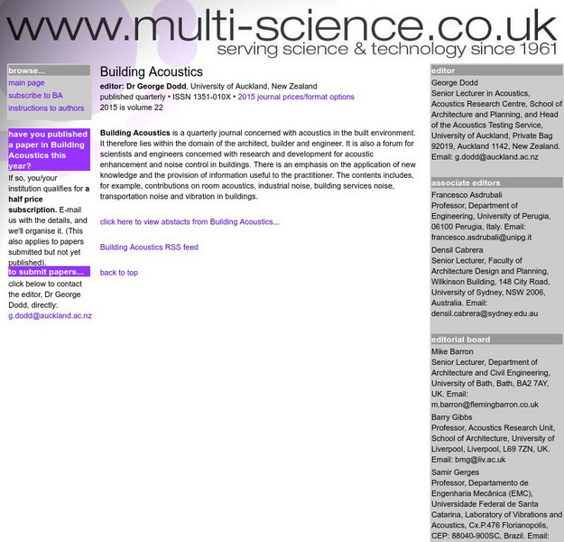 A journal devoted to professionals in the field of architecture, construction, and engineering. This page lists short abstracts for articles in the most current issue of the journal. Visitor has option to purchase the complete article.
