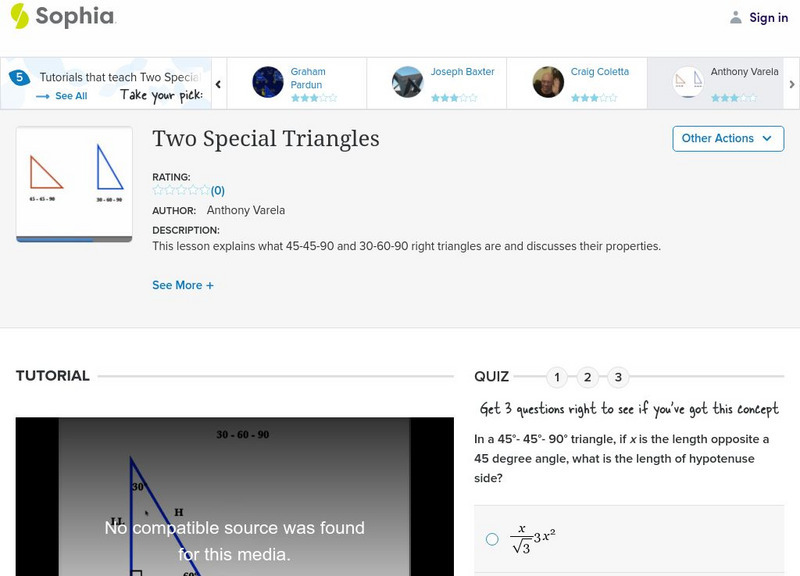[Free Registration/Login may be required to access all resource tools.] Recognize special right triangles and their properties.