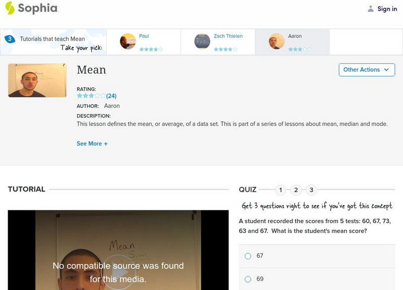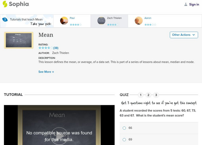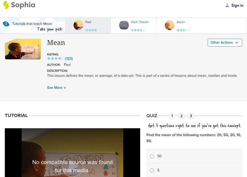 This lesson defines the mean, or average, of a data set. This is part of a series of lessons about mean, median and mode. It is 2 of 8 in the series titled "Mean."