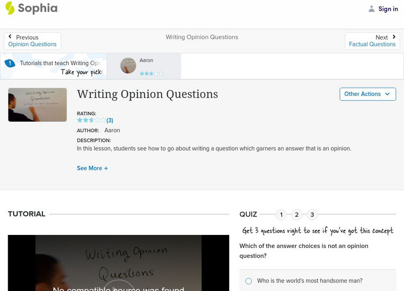 In this lesson, students see how to go about writing a question which garners an answer that is an opinion.