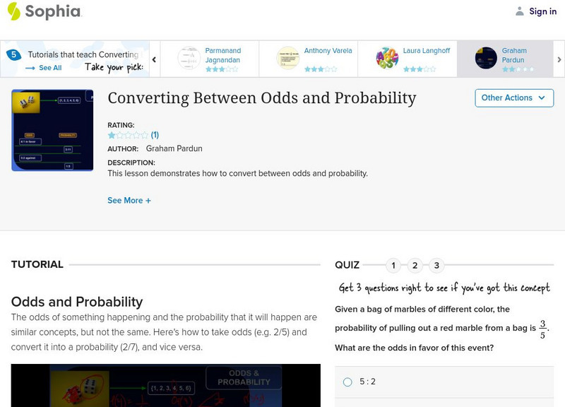 Sophia: Converting Between Odds and Probability: Lesson 3