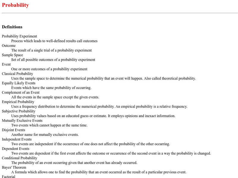 This site, which is provided for by the Richland Community College, gives a list of probability definitions.