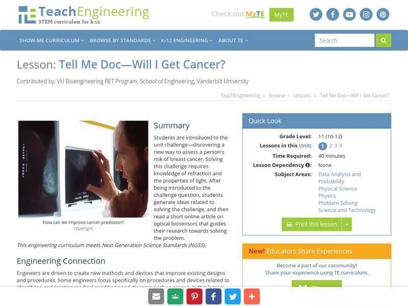 Teach Engineering: Tell Me Doc, Will I Get Cancer?