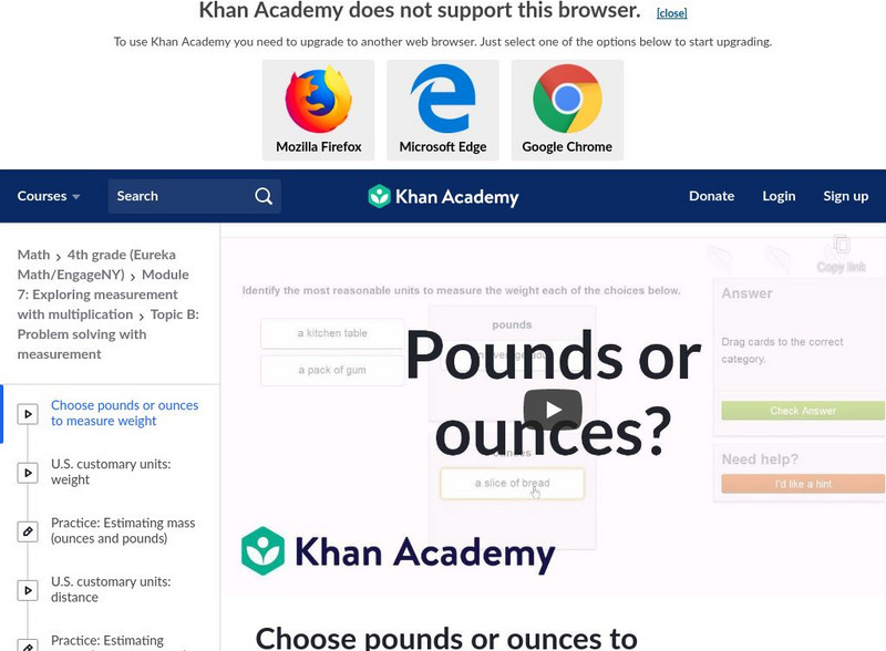 Khan Academy: Choose Pounds or Ounces to Measure Weight