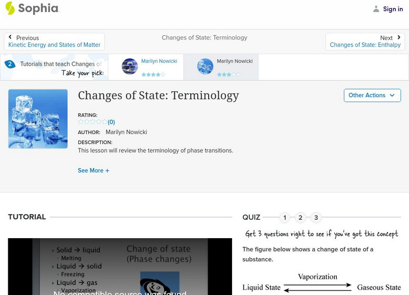 This lesson will review the terminology of phase transitions. It is 2 of 2 in the series titled "Changes of State: Terminology."