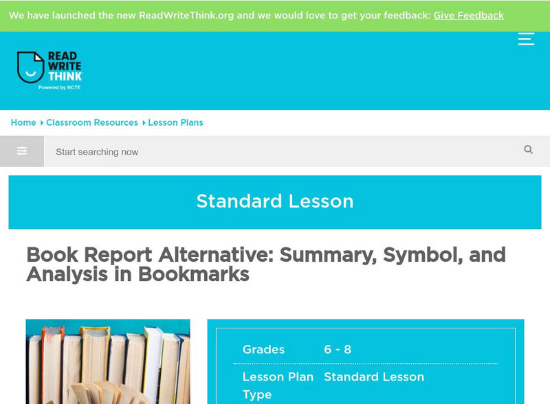 Interesting online lesson that offers a twist on the traditional book report. Students use bookmarks online to justify their preferences and offer analysis of text; they use summaries and symbols to write and analyze.