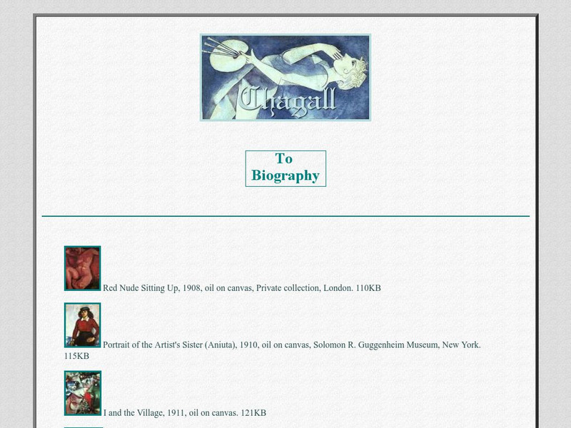 This site provides works completed by the artist, Marc Chagall. In addition, a short biography is included.