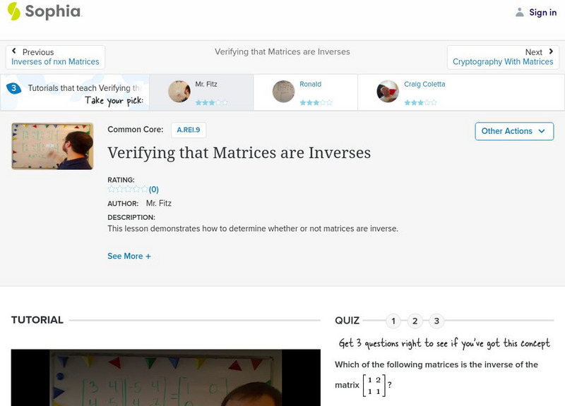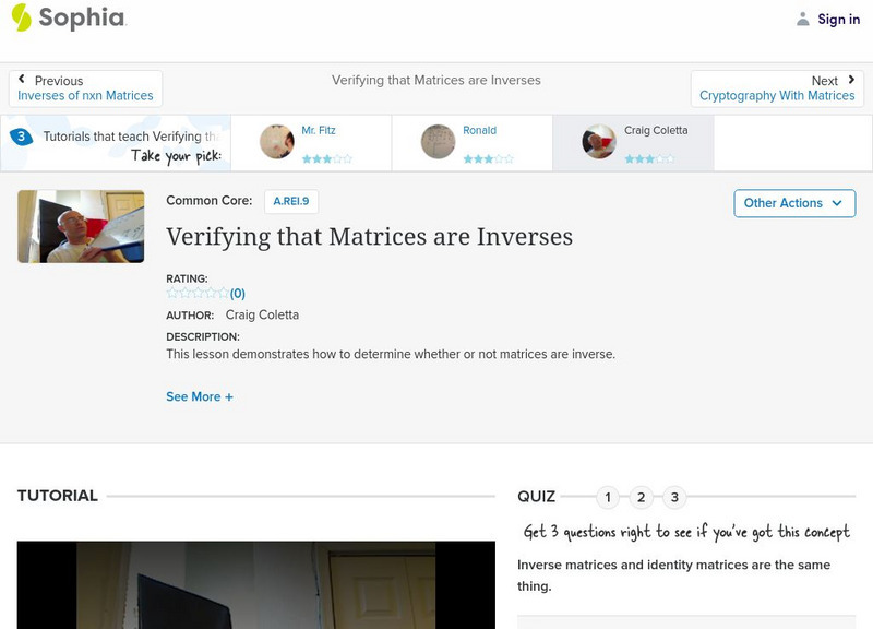 Sophia: Verifying That Matrices Are Inverses: Lesson 1