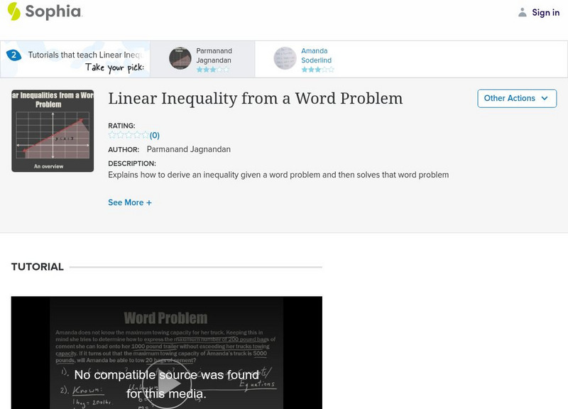 Explains how to derive an inequality given a word problem and then solves that word problem.